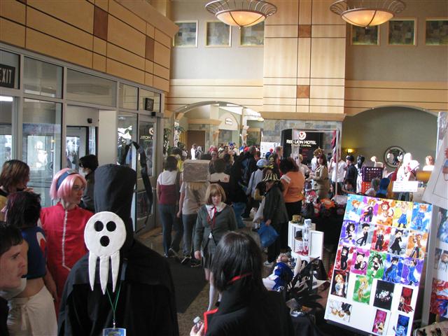 Our first stop was the artist alley and the dealer’s room where there was lots of good stuff to buy. Import items alongside fan made items of every kind were abundant. A wide selection of DVD’s, books, figures, posters, music, and more could be had from many of the merchants within the main room so we did our share of purchasing and browsing. The selection is big, but nothing compared to the majestic whale of a dealers room at Anime Expo. To put this in perspective the entire Red Lion Hotel could have easily fit into the dealer’s room at AX.