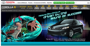 It’s hard to say if this was a good idea, but Toyota did it! They brought Miku to North America and her official car is the Corolla, yep you heard that right. Again was this a wise move? I have to say for one it was a bold move, and to me personally a good move. At first glance I hated the idea of Miku driving a Corolla, I always thought of her as a Yamaha girl, driving down the road on 2 wheels. Click HERE for the official website.